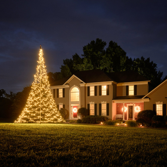 Mit diesem Komplett-Set sind Sie bestens für die Weihnachtszeit gerüstet: LED-Lichternetz in Weihnachtsbaumform inklusive 6 m-Fahnenmast mit Bodenelement. Die ideale Lösung für festlich-stimmungsvolle Beleuchtung auf Weihnachtsmärkten, Firmenhöfen oder anderen Außenbereichen.