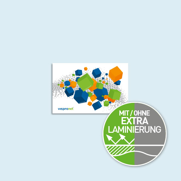 mit Lamimierung: zusätzlicher Schutz durch spezielle Schutzlaminierung nach dem Druck - höchste Kratzfestigkeit, schmutzabweisend, besonders lange Haltbarkeit; empfohlen für längerfristigen Einsatz, Einsatz an häufig wechselnden Standorten