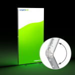 Faltbare LED-Messewand für den mobilen Einsatz: Die Lightbox fold ist mit wenigen Handgriffen einsatzbereit und sorgt dank energieeffizienter LED-Technik für gleichmäßig hinterleuchtete Textildrucke. Über integrierte Magnete lassen sich mehrere Wände flexibel zu individuellen Messeständen kombinieren.